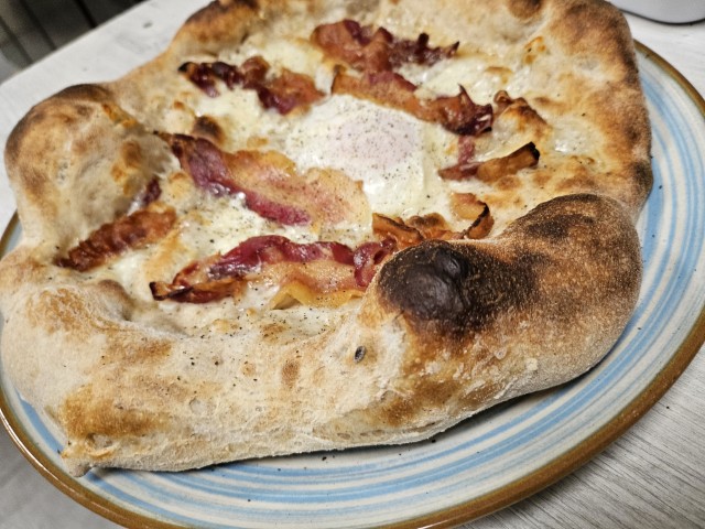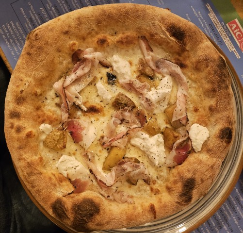 Bianca, mozzarella, bufala campana, patate al forno, guanciale, rosmarino